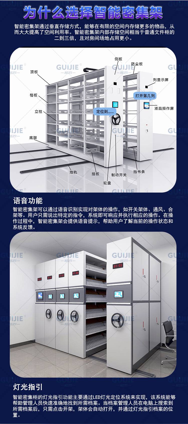 能型电脑多功能密集架自动控制系统是我公司自行研制开发的集手动、电动、电脑控制于一体的*新光机电一体化产品,它具有结构先进、功能多样、操作简便的特点。由电脑控制系统、电子控制系统和机械传动控制系统三部分组成,技术水平具国内领先。三种控制方式各自独立,互不影响,且互相保护。并以人性化的设计为理念,智能化控制系统与网络化管理模式为基础,实现