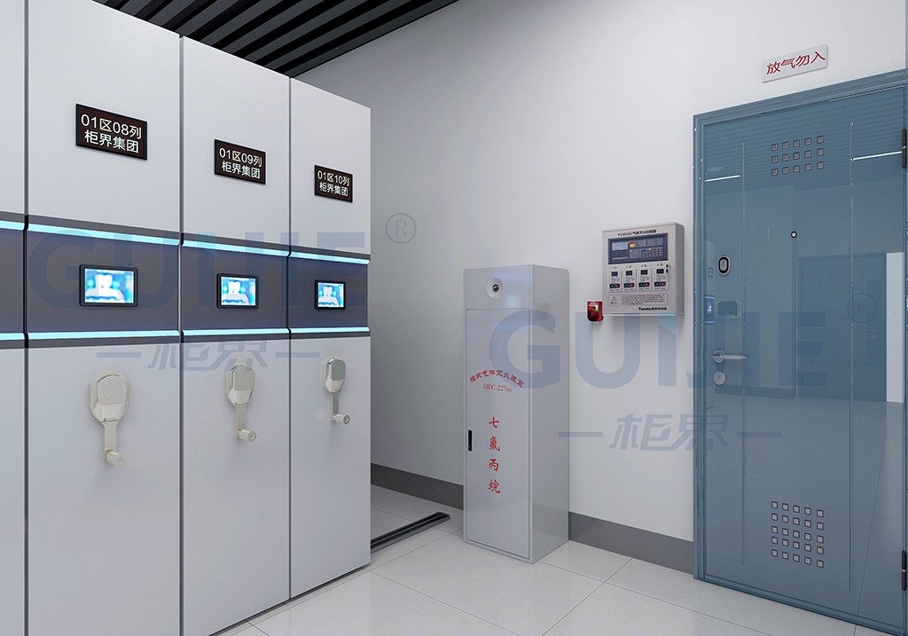 档案室气体灭火系统采用特定的灭火剂,如气体混合物或纯净气体,通过高压储存和喷射装置,将灭火剂迅速释放到档案室内,抑制、扑灭火源,起到灭火的效果。